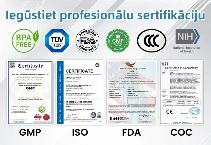 Vairākas sertifikācijas: FDA, CE, ISO 13485, GMP